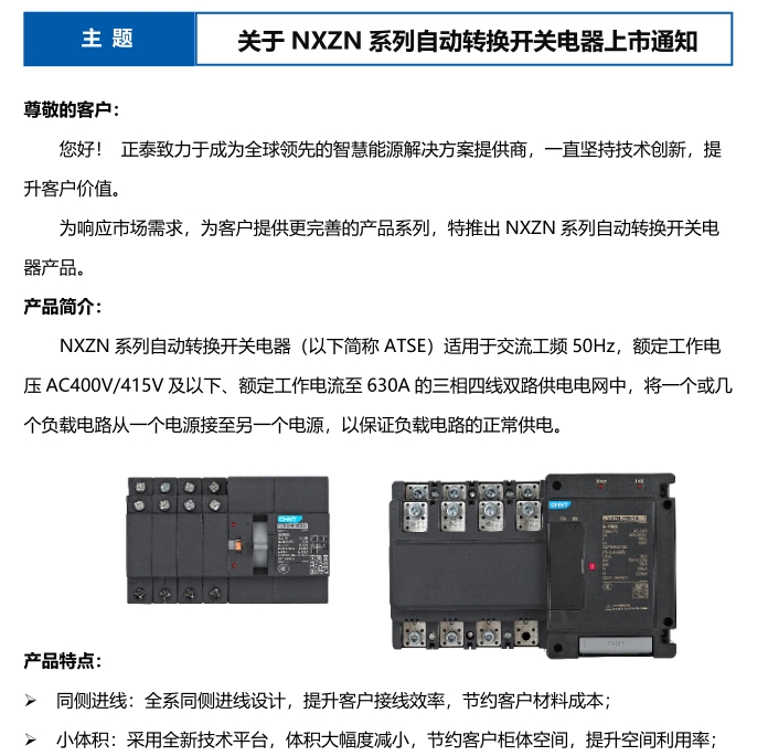 關(guān)于 NXZN 系列自動(dòng)轉(zhuǎn)換開關(guān)電器上市通知